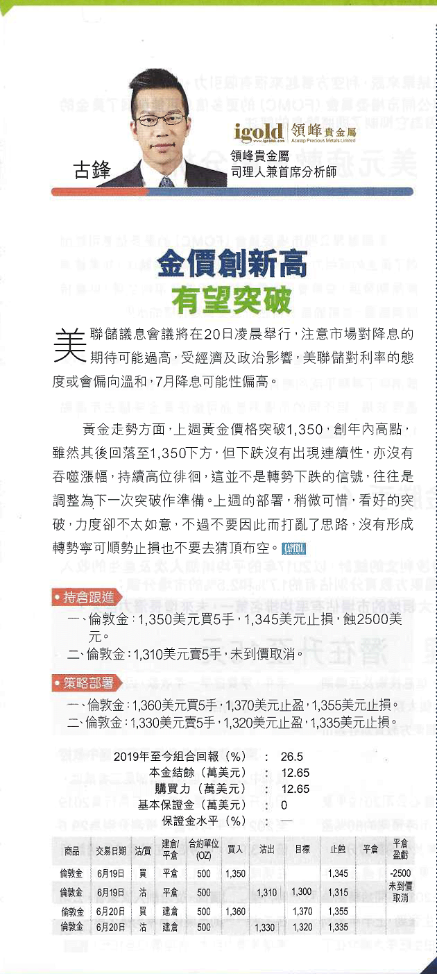 一、伦敦金,1,350美元买5手,1,345美元止损,蚀2500美元。