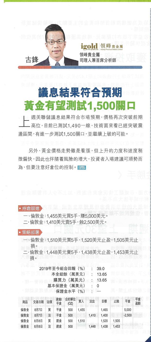 二、伦敦金,1410美元卖5手,蚀2500美元。