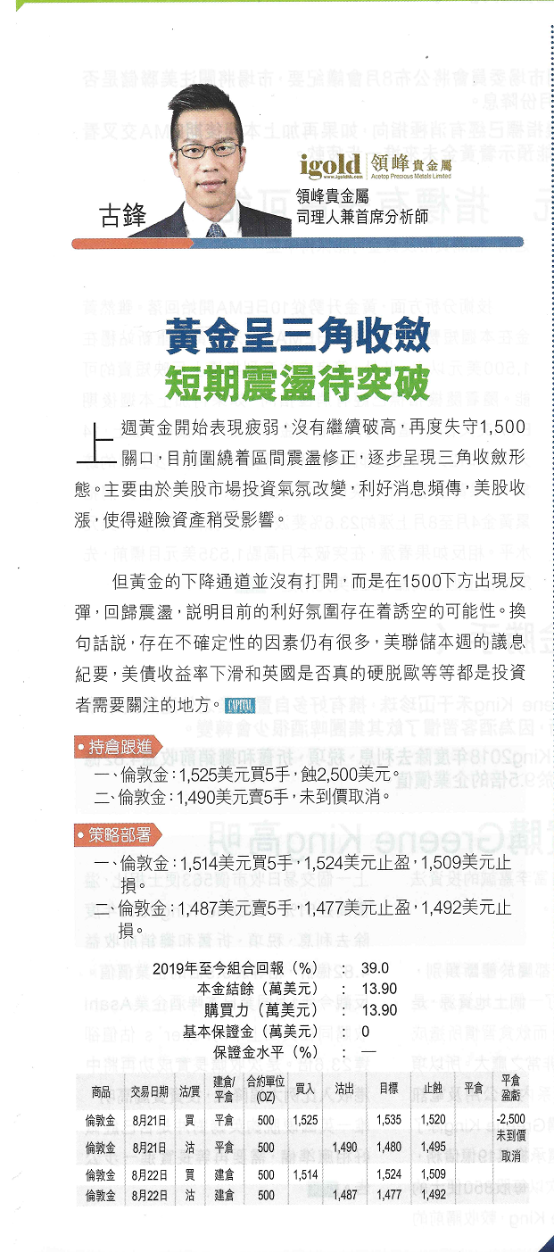 一、伦敦金,1525美元买5手,蚀2,500美元。