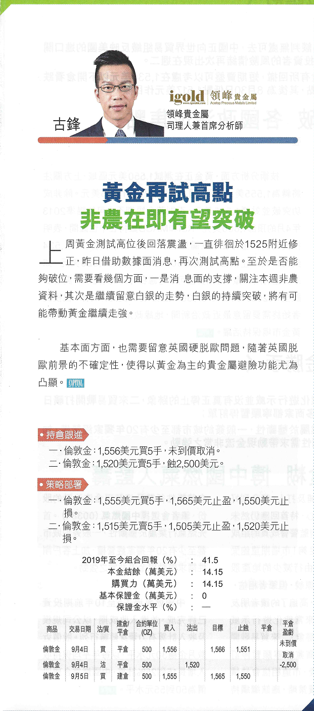 二、伦敦金,1520美元卖5手,蚀2500美元。