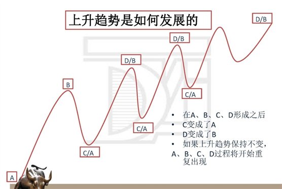 如图说明:上升趋势是指市场正在形成更高高位和更高低位