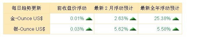 因欧债问题不明朗化,导致欧元走弱,美元走强。上周美元兑欧元回涨至1.34欧元/美元,更是在周末过后达到1.3487美元的高度,相对1月份增加2.5个百分点。同时美国昨日最新数据显示居民房屋销售指数在一月分上涨了2%增加至97,相对去年12月份的95.1,数据有所好转。未来美国经济情况好转下,美元或逐步走强,金银价格受此影响,有可能在短期逐步下跌。