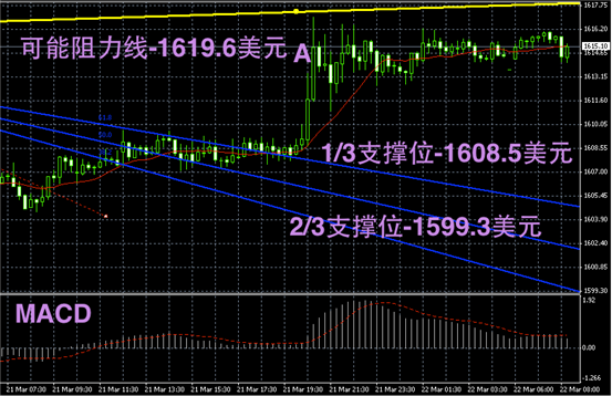 黄金阴阳烛录得上行后,柱体开始收短,且高位聚焦明显,影线录得较短,短线MACD显示空头有所衰减,预期未来或高位窄幅震荡。震荡区间可首先参考阳烛A的高低价。