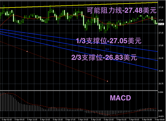 白银阴阳烛录得聚焦明显,柱体整体较短且影线不明显,短线MACD显示没有明显的多头或空头趋势,预期未来或区间内窄幅偏空震荡。
