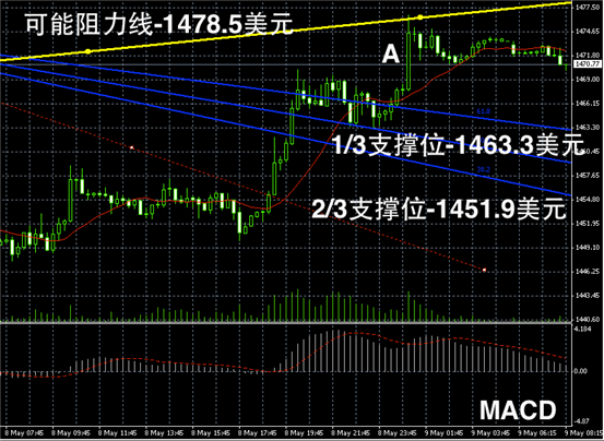 黄金价格反弹,显示1450美元附近的强力支撑,预期未来在Fibonacci区间内继续持稳,如果后期数据不能强力打压黄金价格,市场可能进一步反弹至1480美元以上。整体上,目前仍然以1450 – 1480 美元为主要参考区间。