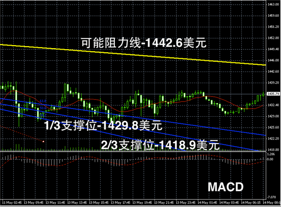 昨日概括:受到美国零售额数据走高和美元指数继续攀升的打压下,贵金属市场昨天持续低位震荡,反弹力度较小,整体仍然在区间支撑位附近徘徊。现货黄金价格一直围绕1431美元附近震荡,今天凌晨开始小幅反弹至1434美元附近,最高时触及1436.9美元/盎司;现货白银价格则基本围绕23.6美元附近震荡,最高时反弹那至23.81美元/盎司。