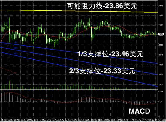 白银阴阳烛录得聚焦明显,整体录得处于红色日平均移动线中位,短线MACD并没有明显的多头或空头震荡趋势,预期未来或继续窄幅区间震荡。