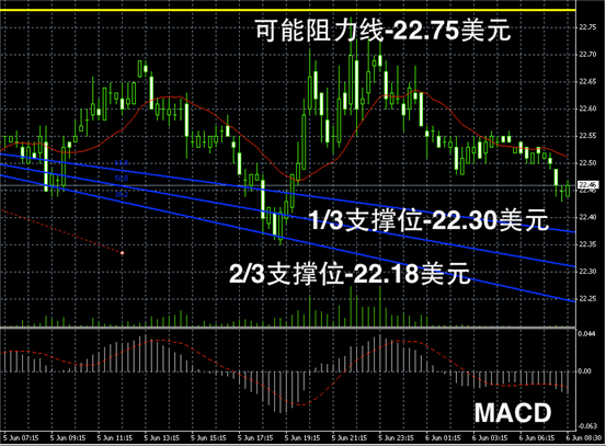 白银阴阳烛录得柱体整体较短,且阴阳烛聚焦均不明显,短线MACD多头或空头均不明显,未来或可能继续区间内窄幅震荡,不过整体偏空下行。