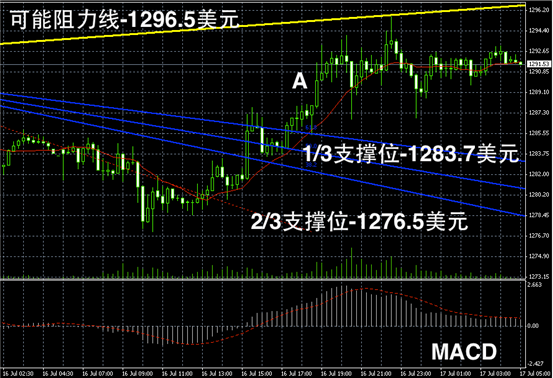 黄金阴阳烛录得反弹后,柱体收短,且高位聚焦明显,整体平均分布在红色日平均移动线中位,短线MACD显示多头有所消散,预期黄金价格或在1290美元上下窄幅整理。低位支撑可参考阳烛A的最低价。