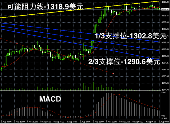 黄金长线阴阳烛末端录得长阳烛,且与红色日平均移动线相交,长线MACD继续呈中性,长线RSI则继续反弹至53后有所持稳,预期或黄金或在1300 美元以上进一步持稳。