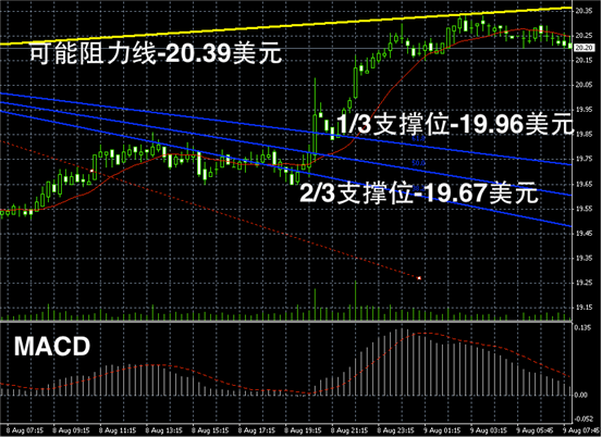 白银长线阴阳烛录得高于红色日平均移动线,不过末端录得出现十字星,长线MACD则呈中性,长线RSI则继续反弹至56,白银或首先在20美元以上持稳。