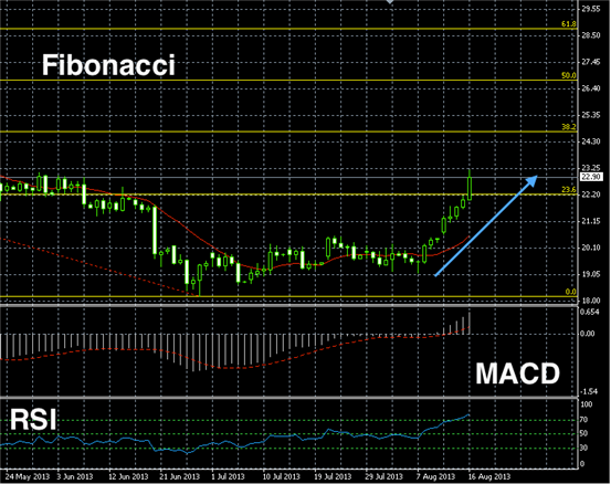不过随后因为美联储缩减QE的预期增加,美国三大股指全线下挫。截至收盘,道琼斯工业平均指数下跌1.47%,跌至15112点;纳斯达克综合指数则跌幅1.72%,至3606点;标准普尔500指数下跌至1661点,跌幅1.43%。美国股市全线重挫,录得8周内最大单日跌幅;这使得贵金属市场避险魅力增加,引发大量低位买单,黄金价格从低位大涨2%,白银价格迎来阶段性小牛市,涨幅约5%。