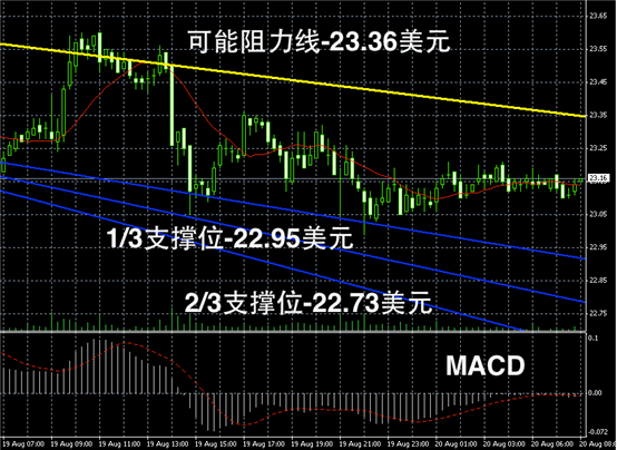 阴阳烛录得低位聚集明,柱体分布色日平均移动线中位,且整体短,影线录短,短线MACD得呈中性,低位23美元附近或成线支撑,期或继续内窄幅震