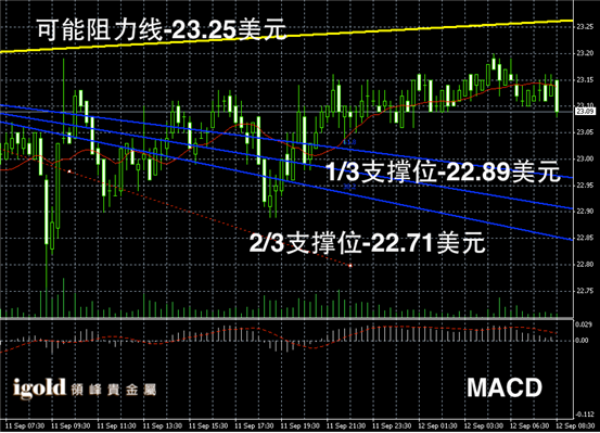 白银阴阳烛录得整体处于红色日平均移动线中位,短线MACD显示呈中性,柱体离散率较大,后期或继续在23美元附近窄幅震荡,不过整体偏空。