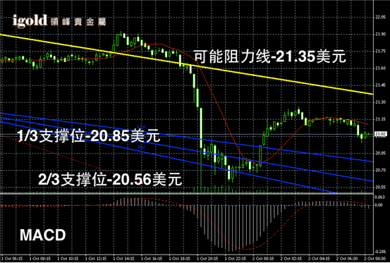 白银录得在Fibonacci第一区间继续滑落,但是小幅持稳在20.6附近,RSI录得在40附近,未来一旦跌破20.6支撑位,可能会金银币滑落至20美元附近支撑。