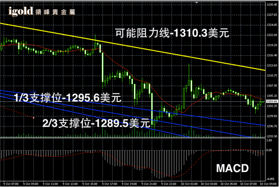 黄金阴阳烛录得阴烛增多,区间下行后,柱体小幅收短,后期MACD显示弱势空头主导,整体上黄金价格或在1300美元以上持稳,但是后期仍旧偏空。