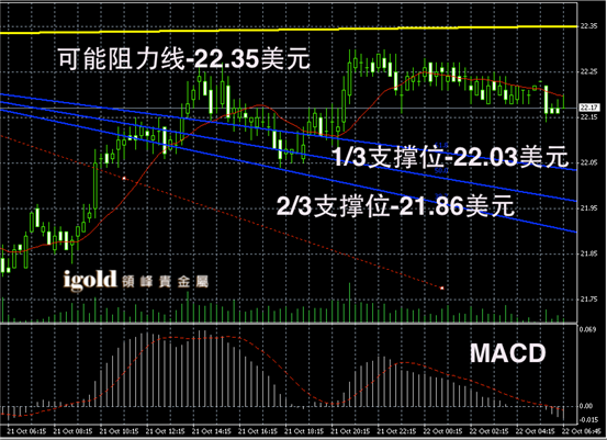 白银长线阴阳烛录得阳烛出席,且继续高于红色日平均移动系统,长线MACD呈弱势空头,RSI则录得在53,没有明显的多空震荡走势。白银价格或继续小幅持稳在22美元以上。