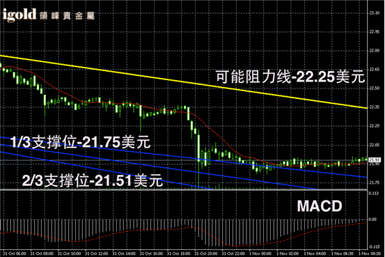白银阴阳烛录得区间下滑后,后期柱体聚焦明显,短线MACD空头减弱,白银价格后期整体或偏于区间震荡。