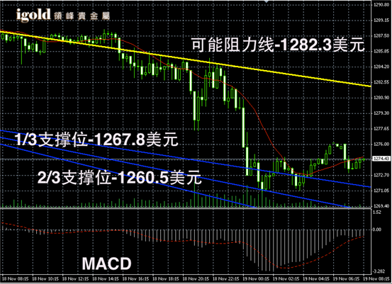 黄金阴阳烛录得阴烛增多,且后期柱体低于红色日平均移动线,短线MACD继续空头主导,不过后期出现了小幅的U型反弹,整体金价短期继续偏空震荡。