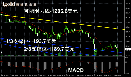 黄金阴阳烛录得下行趋势明显,整体阴烛主导,不过末端柱体回到红色日平均移动线中位,短线MACD显示呈中性,后期黄金价格或在1200美元附近窄幅修正,若偏离,则可能继续下行。