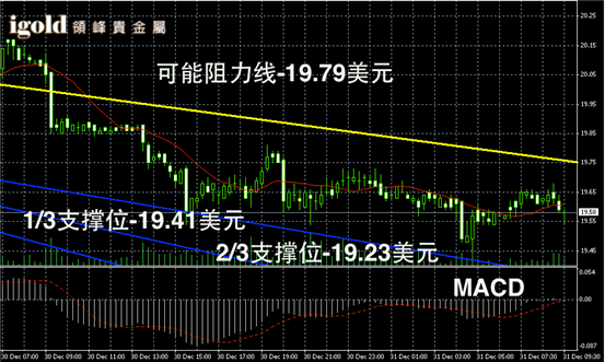 白银阴阳烛录得下行后,柱体录得红色日平均移动线中位,短线MACD显示弱势空头主导,后期白银价格或在19.5美元附近持稳。