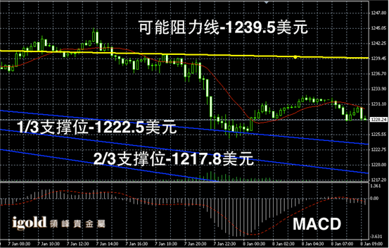 黄金阴阳烛录得回落后,低位开始持稳,后期柱体处于红色日平均移动线中位,短线MACD显示呈中性,黄金价格未来或在1230美元小幅持稳,若跌破则可能继续小幅下行。
