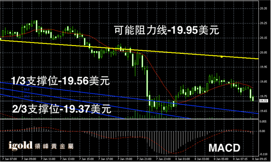 白银阴阳烛录得下行后,形成了U型反弹,短线MACD显示呈中性,柱体后期录得聚焦明显,短线白银价格或可能在19.5 – 19.8美元区间偏空运行。