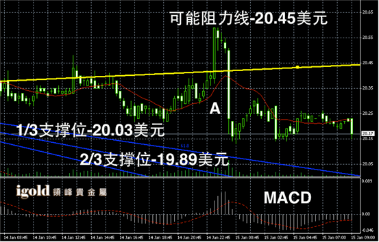 白银阴阳烛录得后期阴烛增多,显示小幅回落,后期短线MACD显示弱势空头主导,白银价格短线或以阴烛A的高低价进行区间整理。