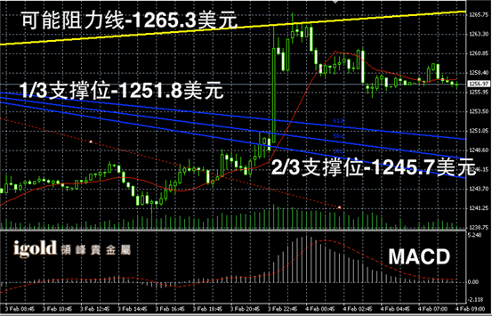 黄金阴阳烛短线录得后期小幅上升,且阳烛开始增多,短线MACD显示呈中性,黄金价格后期或在1260美元线附近整理震荡。