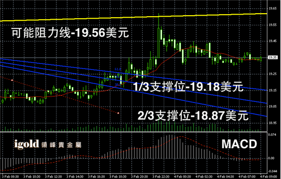 白银阴阳烛录得整体处于红色日平均移动线中位,短线MACD显示呈中性,白银价格后期或在19 – 19.5美元区间继续窄幅整理。