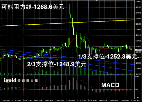 黄金阴阳烛录得小幅上升后,柱体开始回落,后期整体聚焦在红色日平均移动线中位,短线MACD显示呈中性,黄金价格短线或在1260美元附近窄幅整理。