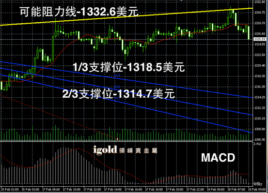 从开盘近两天来的金银走势来看,此波多头势力比较强劲,即预期未来或能够将金价持稳在1300美元以上。另一方面,1330美元附近的阻力也比较强,没有重大利好消息的话,或很难突破。总体上,市场目前主要在区间中位进行低位支撑的探寻。