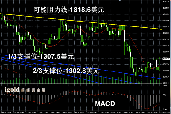 黄金阴阳烛录得后期阴烛变多,下行趋势明显,不过末端录得聚聚明显,整体收平,短线MACD显示空头持稳,后期金价或窄幅整理,短线或跌破1310美元线,则可能继续下行。