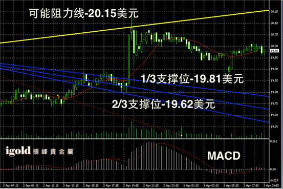 白银阴阳烛录得出现了阶段性反弹,后期阳烛增多,且录得开始高于红色日平均移动线中位,短线MACD显示呈中性,后期白银价格或在19.9美元附近不断持稳。