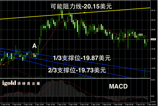 白银阴阳烛录得柱体收短,且整体振幅较小,有小幅回落趋势,短线MACD显示弱势空头主导,后期白银价格或录得在19.8美元上下整理。