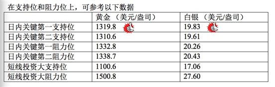 在支持位和阻力位上,可参考以下数据