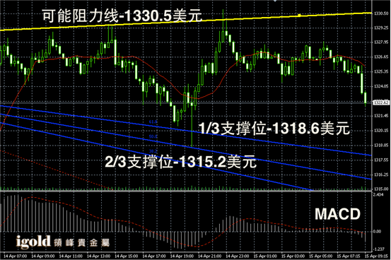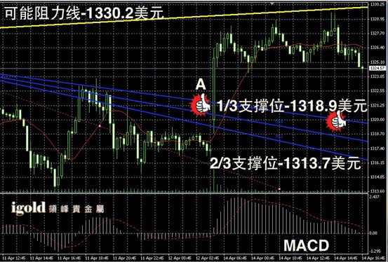 技术回顾:昨晚的评论中,我们继续对目前金价1320 – 1330美元区间的波段震荡进行了分析,从昨天整个走势来看,依然符合我们的预期。其中,黄金价格区间低位支撑我们准确预测。