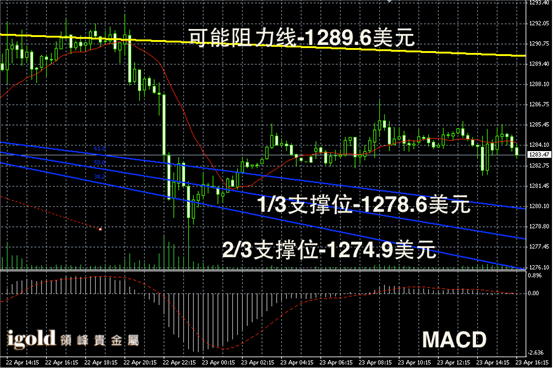 黄金阴阳烛录得柱体较短,整体处于红色日平均移动线中位,短线MACD显示呈中性,柱体聚焦明显,前后离散率较低,后期或小幅下探至1280美元线附近。