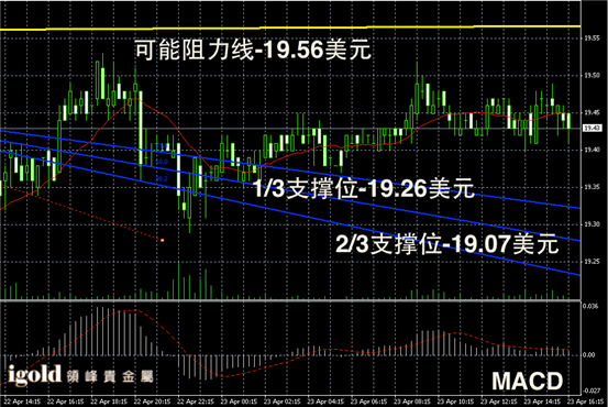 白银阴阳烛录得继续横盘整理,后期柱体小幅高于红色日平均移动线,整体录得聚焦明显,短线MACD显示整体呈中性,后期白银价格或继续在19.5美元附近横盘运行。