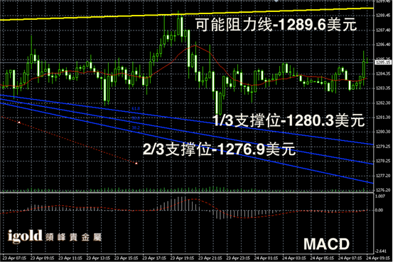 黄金阴阳烛录得柱体收短,整体处于红色日平均移动线中位,柱体聚焦明显,离散率较低,短线MACD显示呈中性。后期金价或继续在1285美元上下持稳震荡。