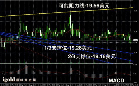 白银阴阳烛录得继续横盘整理,柱体处于于红色日平均移动线中位,整体录得聚焦明显,短线MACD显示整体呈中性,后期白银价格或继续在19.5美元附近横盘运行。
