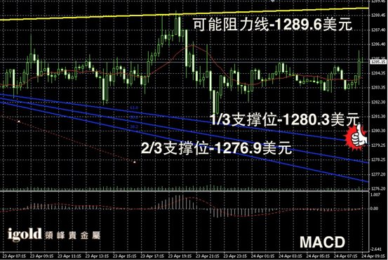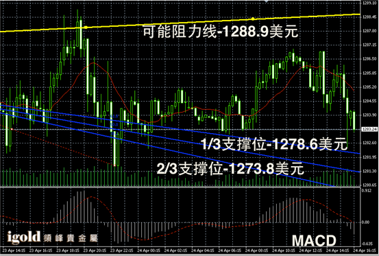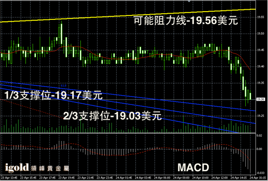 因为昨晚美国3月份新屋销售录得下行,所以美指今天小幅承压,同时美国股市也录得走跌。数据显示,3月份新屋销售月率大跌14.5%,创下2013年7月份以来的最大月度跌幅。美国房产市场近期的低迷,结束了美国股市连续三天的涨幅。这些给金银价格走势带来了一定的支撑。