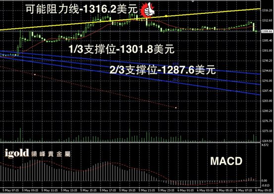 黄金长线阴阳烛录得与红色日平均移动线相交,不过后期阴烛小幅回落,已经有所跌破,末端录得阴烛再次出现 。长线MACD则录得呈中性,RSI则录得回升至51,后期或有小幅的上扬。黄金价格或在1300美元以上不断持稳,对多头局势进行不断定位。黄金价格如果能够突破1315美元,则可能继续攀升至1326美元附近。