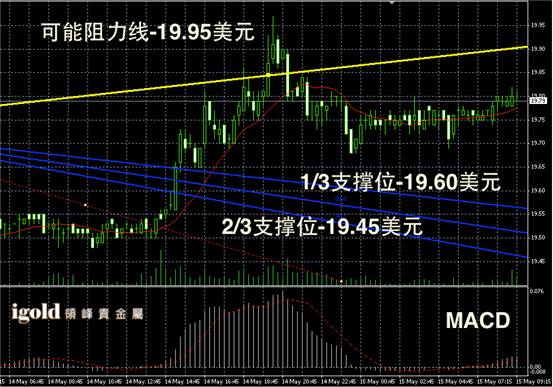 白银阴阳烛录得趋势持稳,柱体反弹后普遍收短,且整体处于红色日平均移动线中位,白银价格反弹后,若不能突破19.8美元附近,则可能录得小幅回调 。