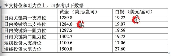 在支持位和阻力位上,可参考以下数据