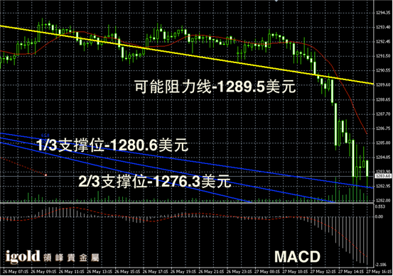 领峰贵金属 27-05-2014 晚评 金银区间下滑 空头获得小胜