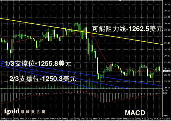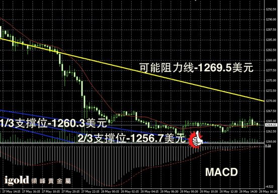 技术回顾:我们在昨晚的评论中提及金价后续仍旧偏空的行情,且指出未来不能持稳1260美元线后会继续下探。从晚上和今天凌晨的走势来看,我们的研判再次获得验证,且金价的低位支撑也精准预测。