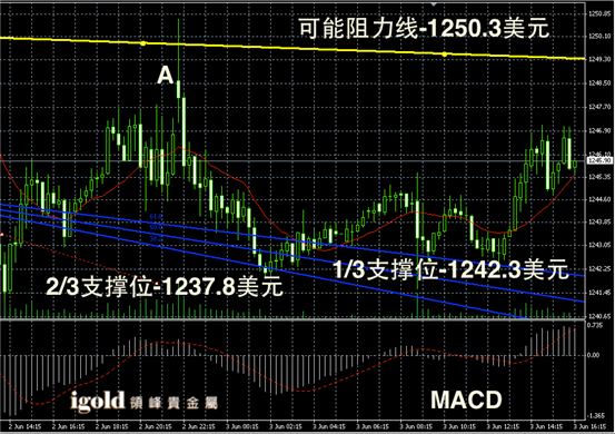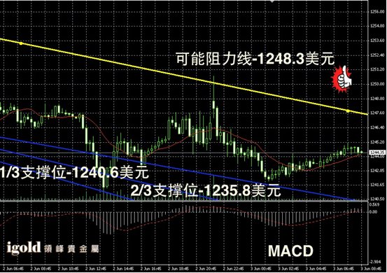 技术回顾:早评中我们明确了金价短线会在1240–1250美元区间整理,今天白天的走势与我们的研判完全一致,另外小幅反弹时的阻力位我们也精准预测。
