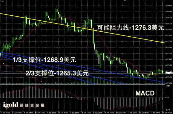 黄金长线阴阳烛录得继续向红色日平均移动线附近靠拢,但是未能突破,末端有所回落,长线MACD呈中性,RSI则录得收平在45,整体持稳,此次金价的反弹或部分结束,尤其是周四美联储FOMC会议前,市场再次反弹的几率不大,因为下跌后,首先是区间调整,所以预期今天上午波幅较小,一直在1272美元线附近整理,下午或有新的动向。其中下午和晚上需要密切关注1270美元线,一旦跌破则可能继续大幅下行。