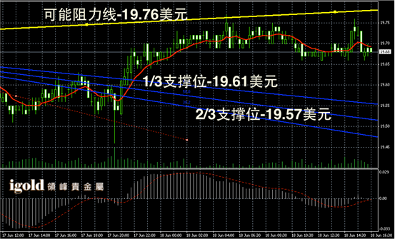 白银阴阳烛录得横盘运行趋势明显,柱体平均分布在红色日平均移动线中位,短线MACD显示呈中性,未来白银价格或继续在19.6-19.8美元区间整理。